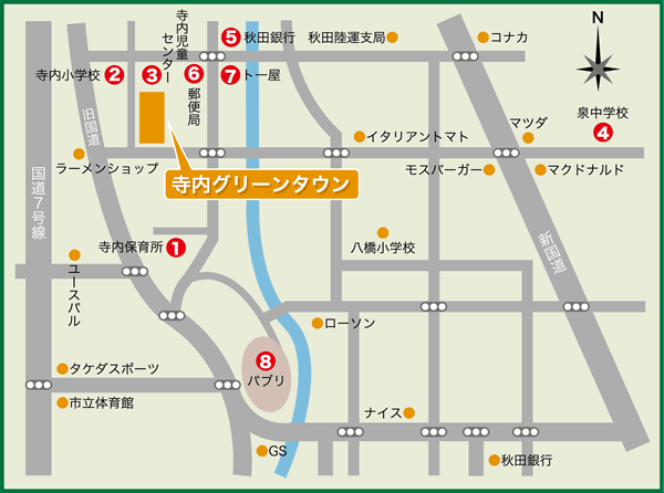 緑に恵まれた静かな住環境で、交通のアクセスも良く、周辺には大型ショッピングモールがあるほか、公園なども豊富で快適な住環境が実現されています。あなたも「寺内グリーンタウン」で、人と自然に優しい、快適な暮らしを始めてみませんか?